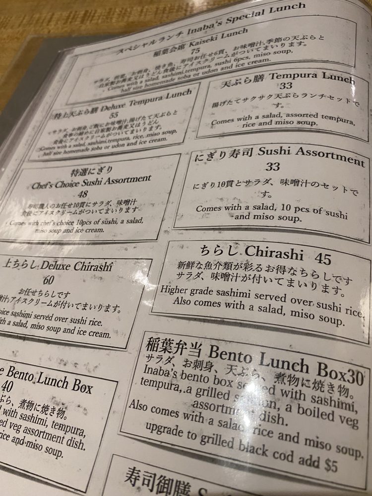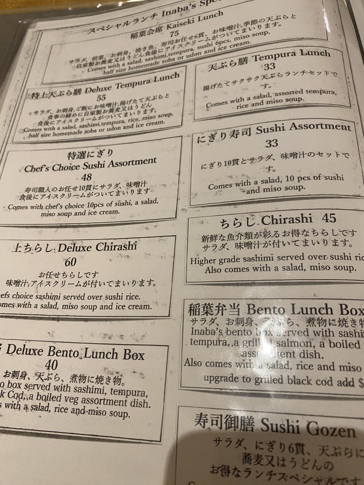 Inaba's special tempura dinner set. Please enjoy our made to order light tempura. Also comes with salad, miso soup, and rice.